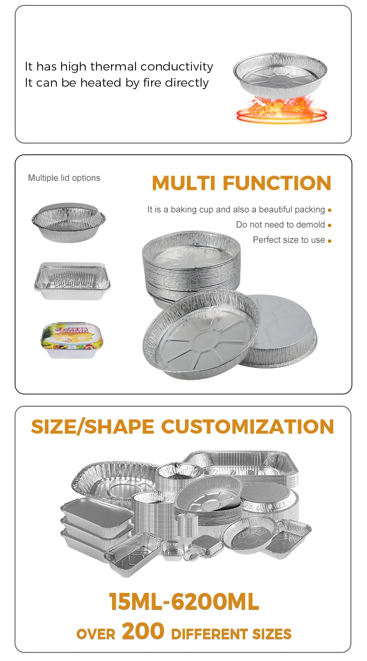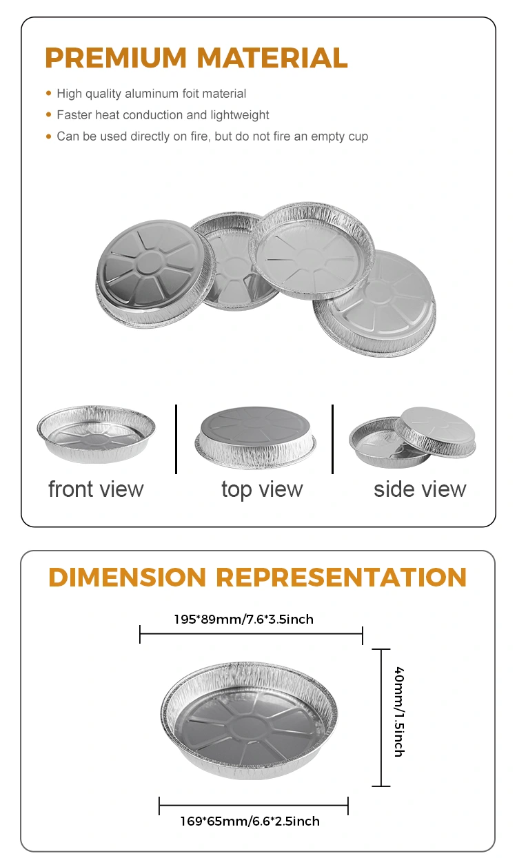 Yunchu aluminiumfolie tilbyr 7 tommers rynkete pizzapanne sølv aluminiumsfoliebeholdere med modellnummer 5067. Produktet har en øvre diameter på 168 mm (ca. 6,6 tommer), en lavere diameter på 145 mm (ca. 5,7 tommer) og en høyde på 25 mm (omtrent 0,9 i ca.. Med en kapasitet på omtrent 400 ml (ca. 14,1 oz), er den ideell for å bake pizza uten å feste seg under bakingen, lett å frigjøre mugg og ingen lukt. I tillegg forhindrer den fullstendig krympede designen mat i å søle ut, og øker praktisk. Vi kan også tilby logo -tilpasningstjenester for å hjelpe deg med å utdype kundenes inntrykk og forbedre merkevarens synlighet.