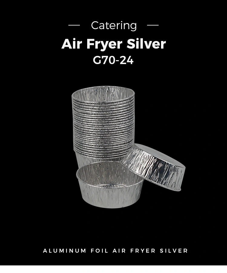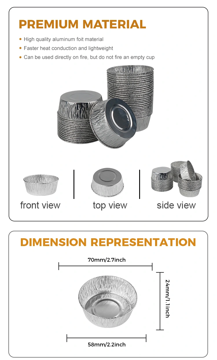 Denne kakebakekoppen sølv aluminiumsfolie-matbeholderen er nøye tilpasset av Yunchu-fabrikken, laget av høykvalitets sølv aluminiumsfolie, modellnummer G70-24. Den er designet for å servere små porsjoner mat, for eksempel snacks og gelé, og perfekt imøtekomme behovene til moderne forbrukere for små deler av forskjellige matvarer. Det er praktisk å nyte alene eller dele med andre.
