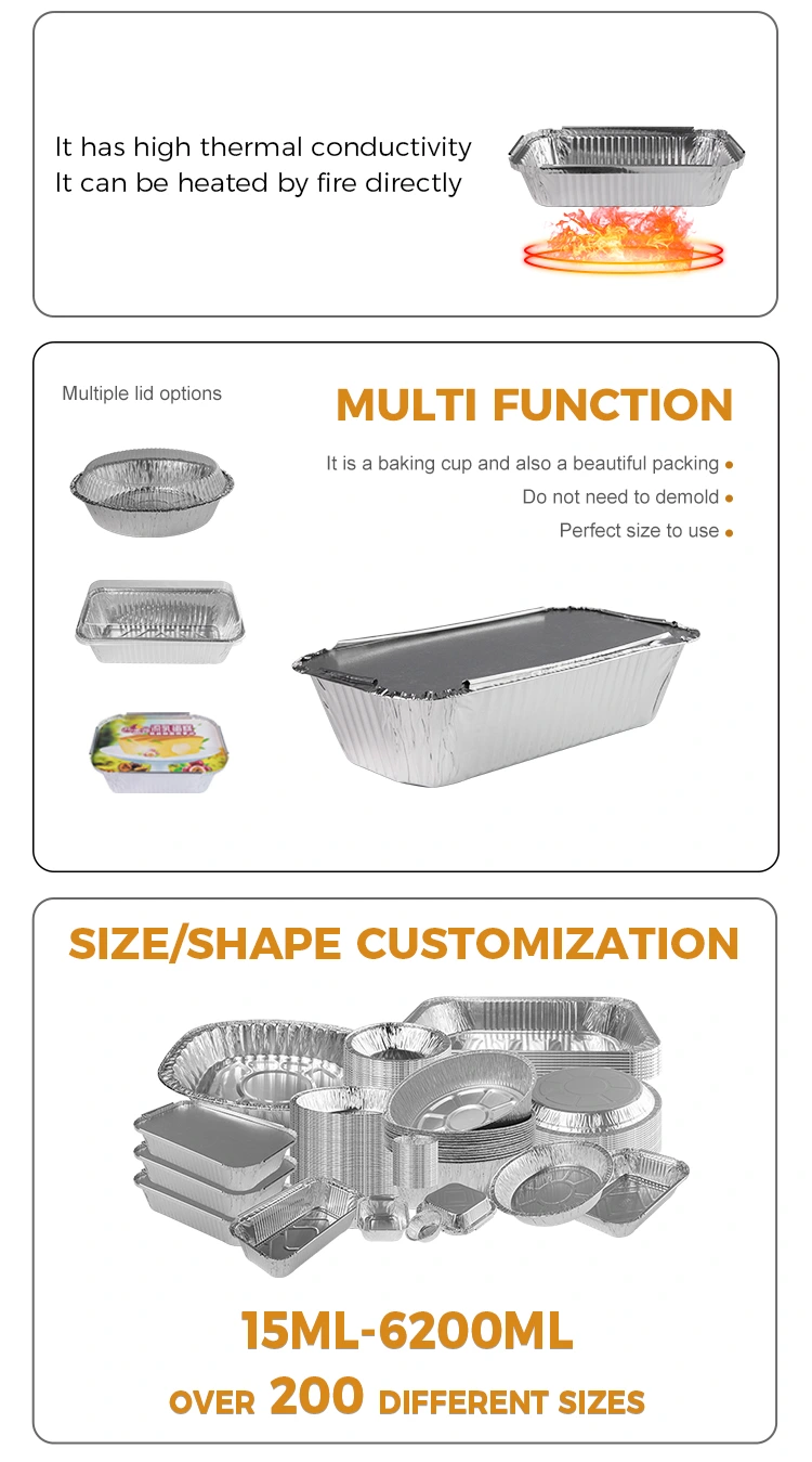 Denne engangs-foliebeholderen av hurtigmat-kasse-sølv-aluminiumsfolie er laget av høykvalitets 8011 aluminiumsfolie-materiale, som har en god varmebeskyttelseseffekt og kan opprettholde temperaturen på maten, noe som gjør maten mer deilig og deilig. I tillegg er vår rektangulære BBQ sølv aluminiumsfoliebeholder også utstyrt med en termisk isolasjonsfunksjon, som kan kobles sammen med aluminiumsfolie lokk eller PET -plastlokk, noe som er praktisk for tilpasset logo og forbedrer merkevarebildet ytterligere.