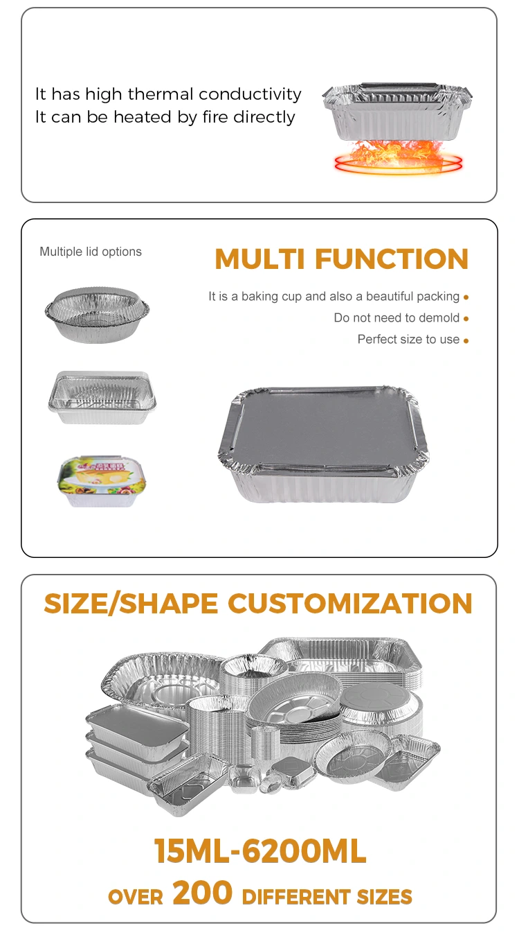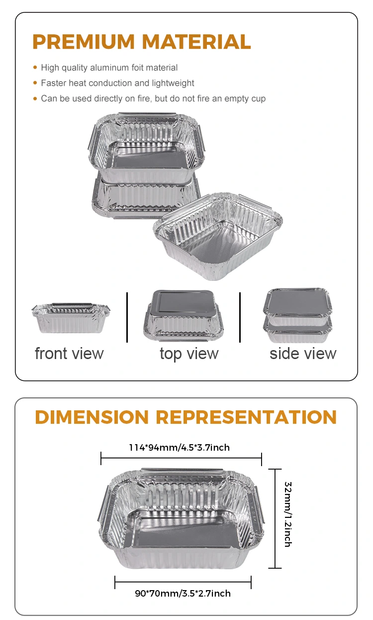 I tillegg er denne engangsgrillen lunsjboks sølv aluminiumsfoliebeholder også ekstremt trygt, da den i det hele tatt kan brukes under en åpen flamme uten å bekymre seg for brannfare i det hele tatt. Samtidig gir den utmerkede temperaturmotstanden og forseglingen også en garanti for sikker transport av mat, slik at forbrukere og kunder kan bruke den med mer selvtillit.