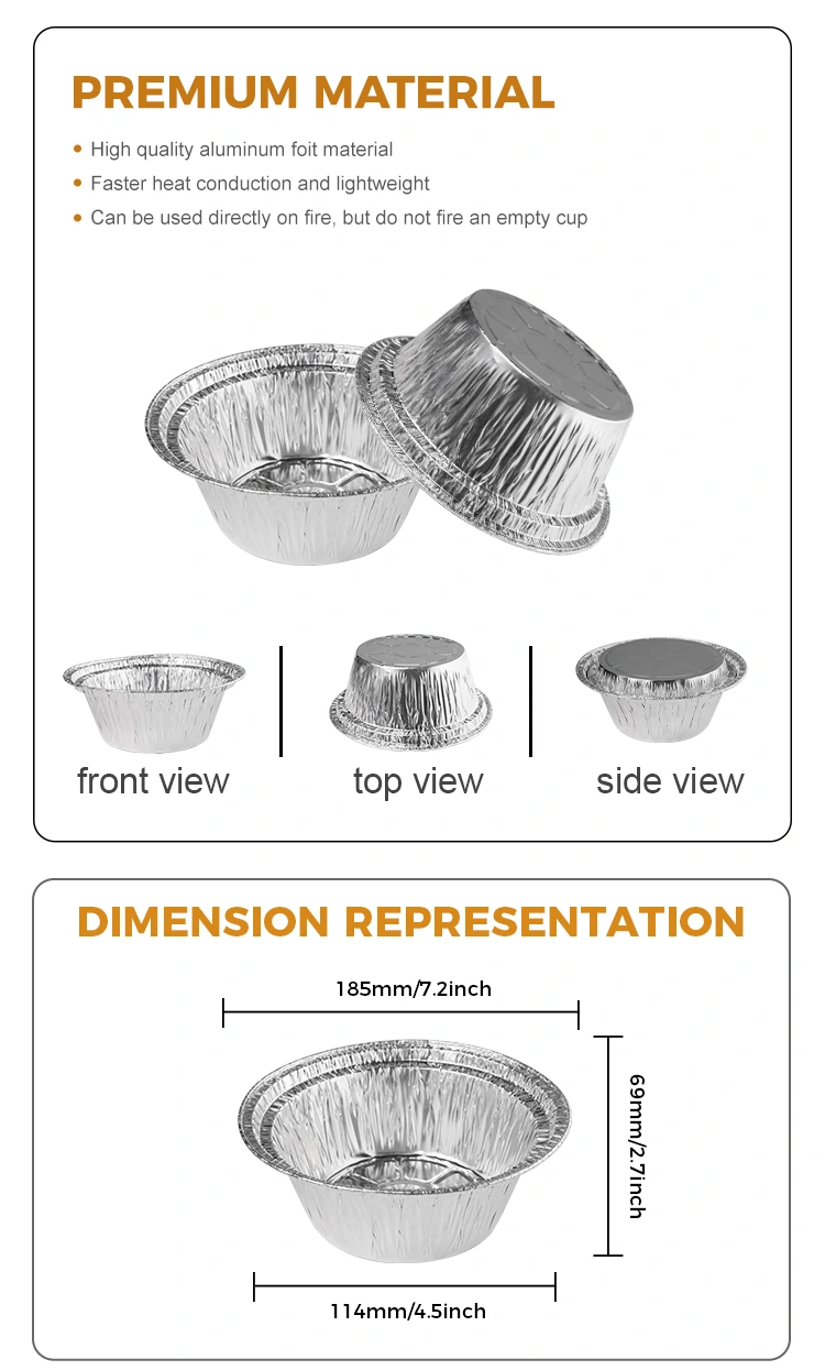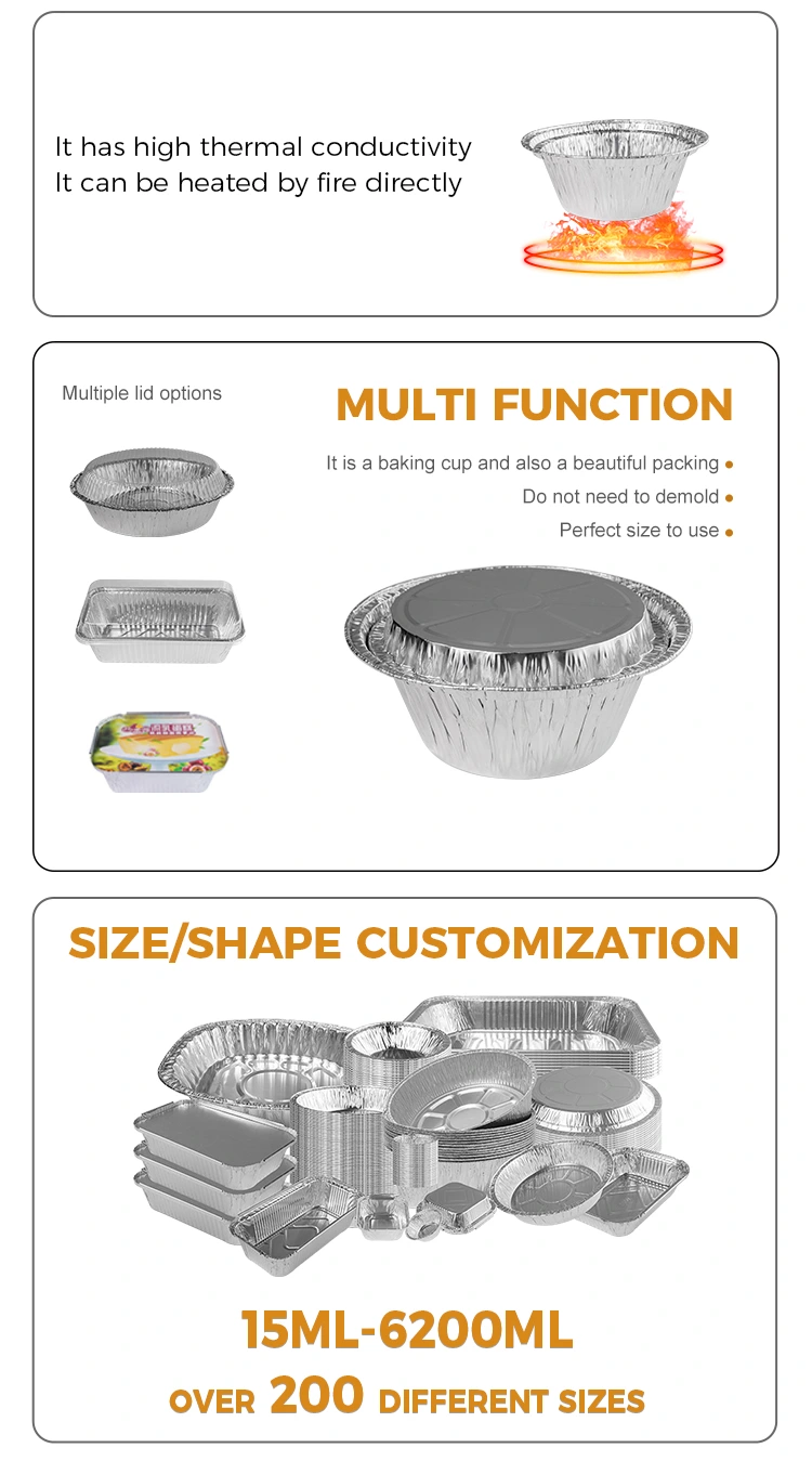Yunchu aluminiumsfolieleverandør rundt liten pakke baking sølv aluminiumsfolie matbeholder er laget av matkvalitets aluminiumsfolie, etter inspeksjonen av selskapets matsertifisering, kan materialet tyknet, kan gjøres oljesikre og ikke-stukkende, og den er en stikk, og den kan være en baksiden, og den er en stukkesølv, og den kan være oljesikring, og den er tyknet, kan du være oljebestemmende, og den er tyknet, Brann, stekeovn, mikrobølgeovn, hele boks, kan brukes over åpne flammer, det tykne materialet i aluminiumsfolieboksen er ikke lett å deformere, aluminiumfolieproduktene som brukes er plast, og det vil være mer praktisk å bruke når du bruker. Mat kan lages på en rekke måter å oppfylle dine produksjonsforhold. Det er en rekke stiler å velge mellom, for å imøtekomme behovene til forskjellige bruksområder, to typer lokk å velge mellom, gjennomsiktig aluminiumsfolie lokk, plastmateriale, gjennomsiktig lokk er ikke lett å tåke 1-2 cm høyere enn matbok (kan ikke brukes på høy temperatur), mer temperatur med flokk.