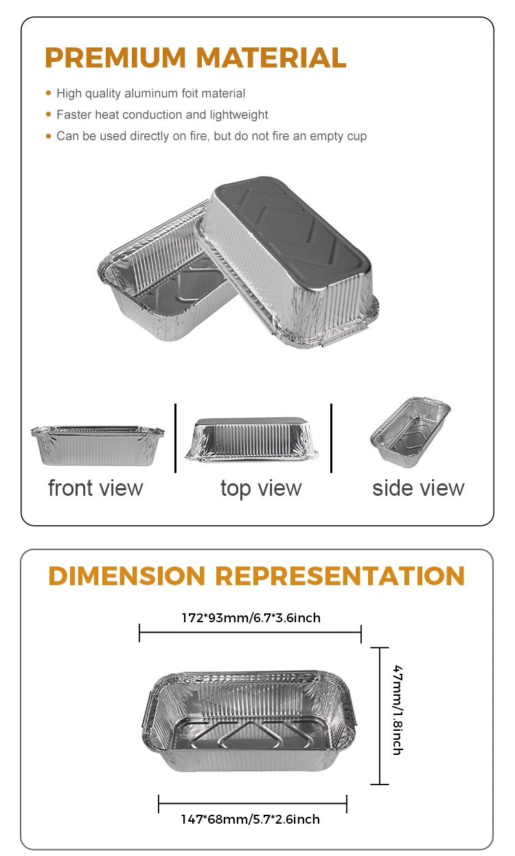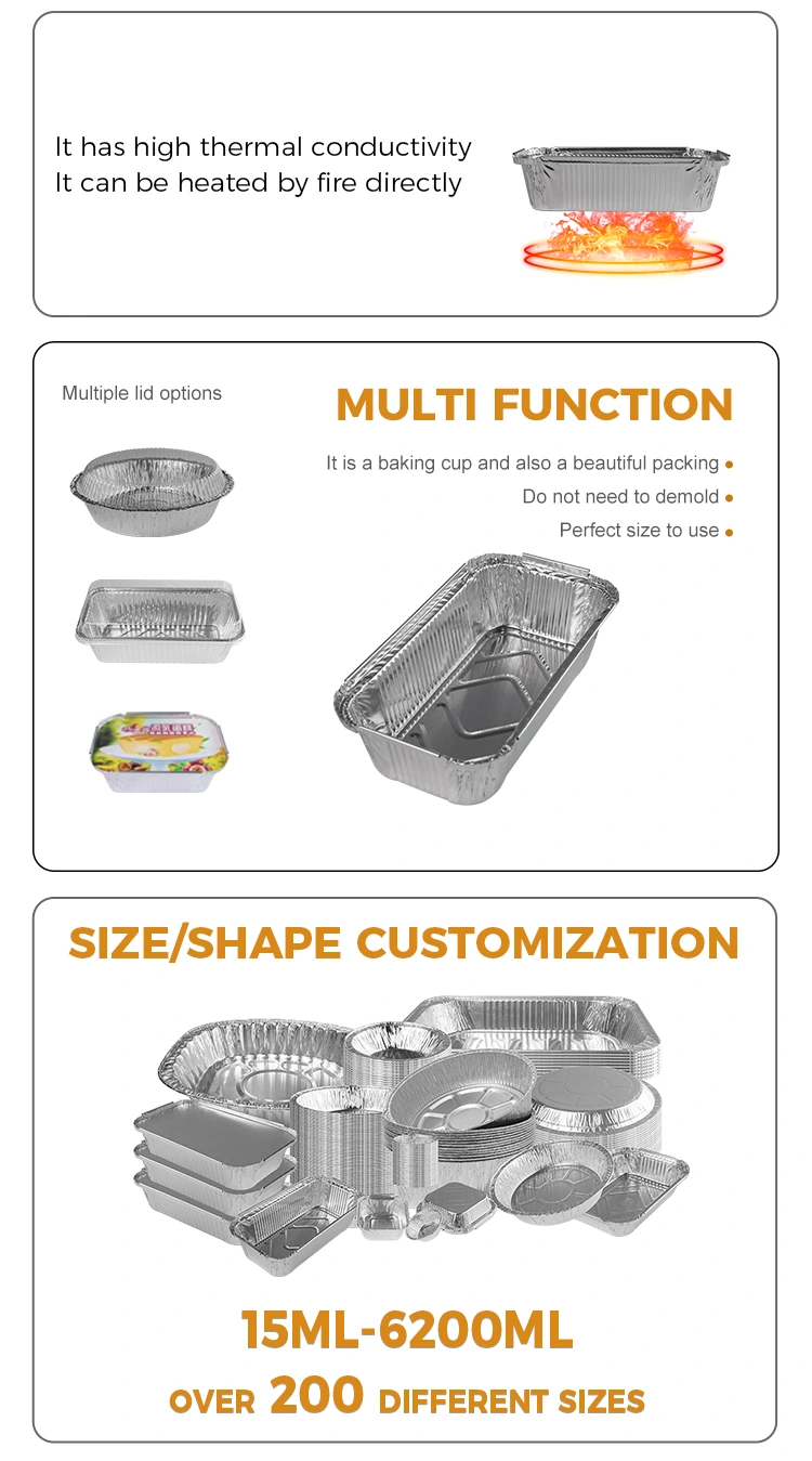 De engangsrektangulære bakingssølv -aluminiumsfoliebeholderne fra Yunchu aluminiumsfolieleverandør er et allsidig kjøkkenverktøy som er egnet for forskjellige tilberedningsmetoder som grilling, varm gryte, gratin, takeaway -emballasje og mer. Denne beholderen er kompakt nok til å passe til en rekke potter og utstyr, og kommer i en rekke størrelser for å imøtekomme behovene til forskjellige åpne flammegrilling. Den kan brukes til å lage forskjellige matprodukter, for eksempel Air Fryers og andre utstyrsapplikasjoner, varme- og oljemotstand, enkel baking.