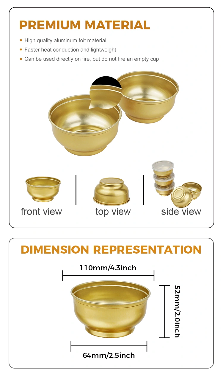 • Engangsrund små gullskål aluminiumsfoliebeholdereEngangsrund små gullskål aluminiumsfoliebeholdere
