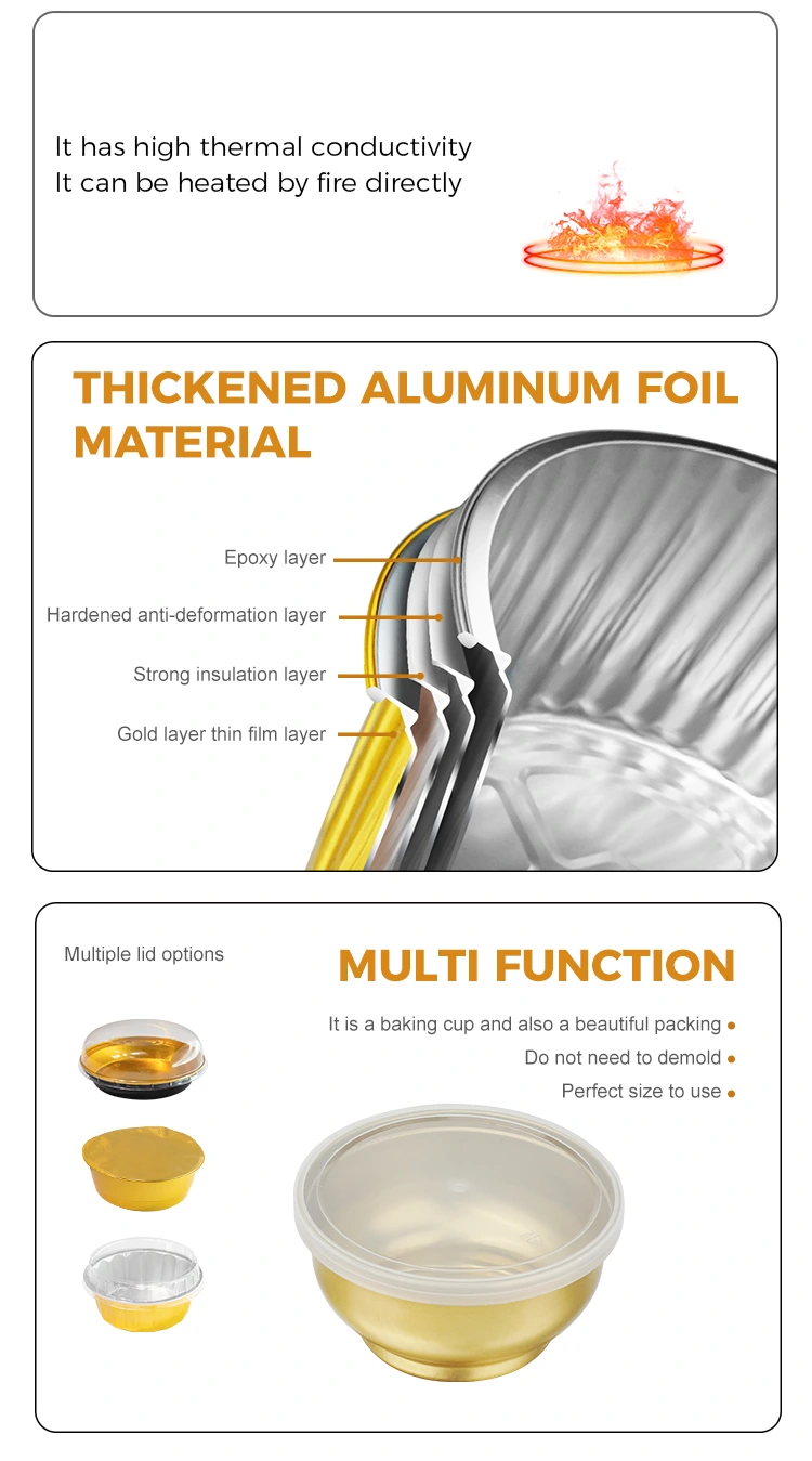 Yunchu aluminiumsfolieleverandør, engangsrund små gullskål -aluminiumsfoliebeholdere, tyknet aluminiumsfolie, høy hardhet, ikke lett deformert, kan forsegles uten lekkasje, sterk varmebestandighet, gjenbrukbar, servering som både en varmemotstand og kantemotstand - kan -kantemotstand - kantesermotstand - kantemotiver - Vær dampet, nedkjølt, frosset og kan resirkuleres. Matkvalitets PE-indre membran, metallmateriale sammenkoblet med matkvalitets PE-indre membran, fargeløs og luktfri tykk krukke kropp gjør at den lille krukken ikke lett deformeres, og gir god beskyttelse, sterk tetningssikkerhet og pålitelighet, flaskehetten kombineres med flaske kroppen, sterk tetning opprettholder friskheten til produktet. Engangsrunde små gullskål -aluminiumsfoliebeholdere er mye brukt i forskjellige matindustrier som matfabrikker, godterifabrikker, tørkede fruktfabrikker, bakerier, spesialmatbutikker og tørket fruktbutikker, etc. De brukes til å holde mat, godteri, honning, tørket plommer, tørket frukt, alderen tanger -skrell, fast, honning, væskesvid.