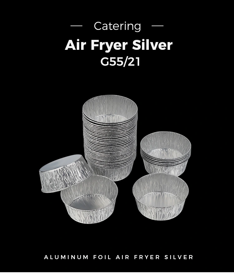 • Engangs sølv rund luftfrityrkoker Sølv aluminiumsfolie matbeholdereEngangs sølv rund luftfrityrkoker Sølv aluminiumsfolie matbeholdere