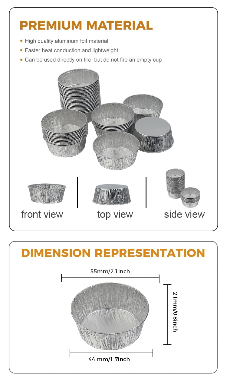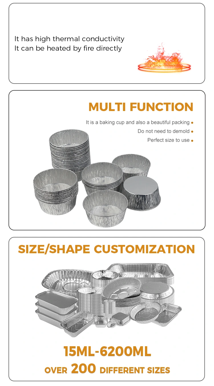 Yunchu aluminiumsfolieleverandørs engangsluftfrityrkoker i sølv, aluminiumsfolie, er laget av matgodkjent fortykket aluminiumsfolie. Det er trygt, har ingen lukt og har ingen skadelig nedbør. Den kan kontakte alle slags dyppematerialer direkte. Denne lille aluminiumsfoliebeholderen kan stables for å spare plass, ikke deformeres og lekker ikke. Sølv aluminiumsfolie har en jevn tekstur og utmerket varmeledningsevne. Den kan brukes på restauranter, kafeer, familiesammenkomster osv. Den brukes sammen med snacks i airfryers osv. Selv om den inneholder tykke sauser og fete dipsauser vil den ikke lekke. Det holder bordplaten og kjøkkenutstyret rent og ryddig. Presentasjonen av folien er enkel og vakker i ulike scener. Sølvutseendet kan matches med ulike middagstallerkener.
