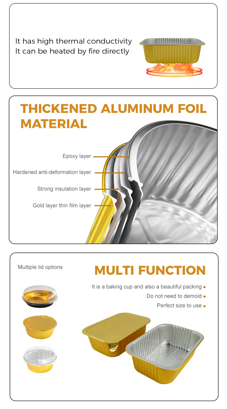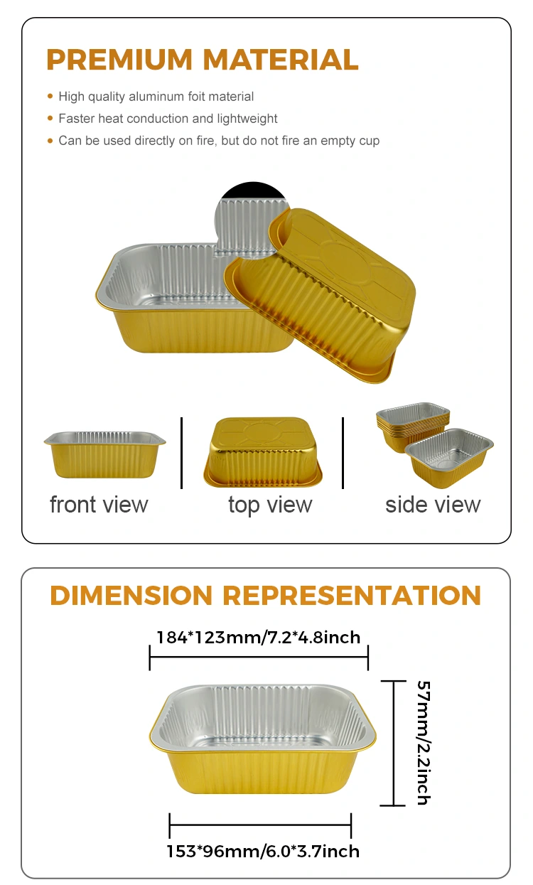 Yunchu aluminiumsfolieleverandør Engangs kvadratforsegling Gratin aluminiumsfoliebeholdere er nøye laget av foliefolie av høy kvalitet, som kan brukes med aluminiumsfolieforseglingslokk, som har utmerket tetningsytelse, høy temperaturmotstand og olje- og lekkasjemotstand. Det er mye brukt i forskjellige scenarier som matemballasje, oppvarming, kjøling og takeaway -levering. Overflaten er designet med en lett vegg, og utseendet er flatt og glatt, noe som er praktisk for automatisk forsegling av varmeforseglingsfilmen, for å forbedre emballasjeeffektiviteten.