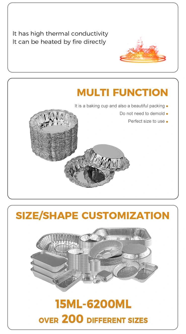 Yunchu aluminiumsfolie leverandør blonder rundt bakekake sølv aluminiumsfoliebeholdere, veldig praktisk for bakekaker, eggterter og luftsteking, med mange funksjoner, tykk og holdbar for baking. Når du velger bakeformer, hva verdsetter du mest? Er materialet pålitelig? Er det lett å dempe? Er det brukervennlig? Denne blonder rundt bakekake sølv aluminiumsfoliebeholder tilfredsstiller dine behov for å bakeformer! Ett stykke støpt, tyknet og holdbart for baking, laget av 8011 Matkontaktkvalitet aluminium Folie materiale, trygt for matkontakt, ikke lett deformert eller lekker, ensartet varmeledning, ikke lett brent eller overkokt, deilig og trygt å lage, olje og flekkmotstand, lett å håndtere, med å lure rundt for å gjøre det enkelt å lage den rinkende formen, med å få det lett å håndtere, med å få det lett å gjøre det lett å gjøre det lett å gjøre det lett å håndtere det lett å håndtere,
