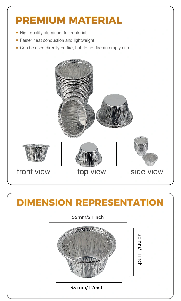 For bruk i hjemmeovn kan du bruke aluminiumsfoliekopper til å lage minikaker og sunne bakte puddinger som barna dine elsker å spise. Det er ikke nødvendig å rengjøre stekebrettet og det er enkelt å rydde opp etter måltidet.