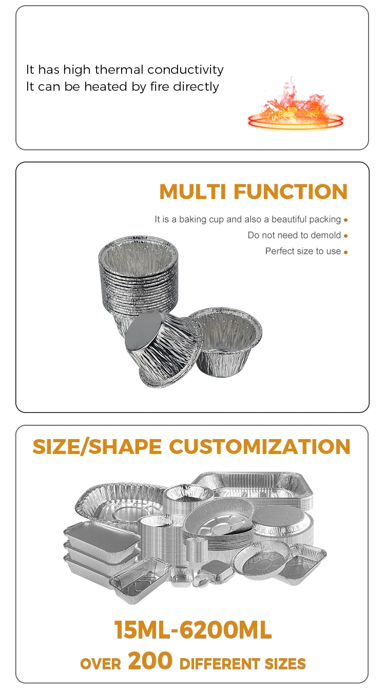 Yunchu aluminiumsfolieprodusentens engangs små runde kakeluftfrityrkoker i sølv aluminiumsfolie bruker 8011-O matvarekvalitets aluminiumsfolie, som har bestått den amerikanske FDA-sertifiseringen for matkontaktsikkerhet og overholder EUs SGS sikkerhetsstandarder for matkontaktmateriale. Etter profesjonell testing har den ingen lukt og ingen skadelige rester. Den kan kontakte alle typer mat direkte. Det er ikke lett å deformere eller bryte. Den er effektivt lekkasjesikker og anti-stick. Den kan inneholde flytende ingredienser som kakedeig, puddingvæske, saus osv. Den ytre rullekanten er antiripe, noe som reduserer risikoen for å skrape hendene. Temperaturmotstandsområdet dekker -40 ℃ til 220 ℃, og det kan tilpasses til frityrkokere, ovner, dampkokere og mikrobølgeovner (middels-lav varme). Den kan plasseres direkte i frityrkokeren for å bake minikaker og eggeterter, og kan også brukes til å varme opp frosne ingredienser rett etter tining, for å møte en rekke matlagings- og bakebehov.