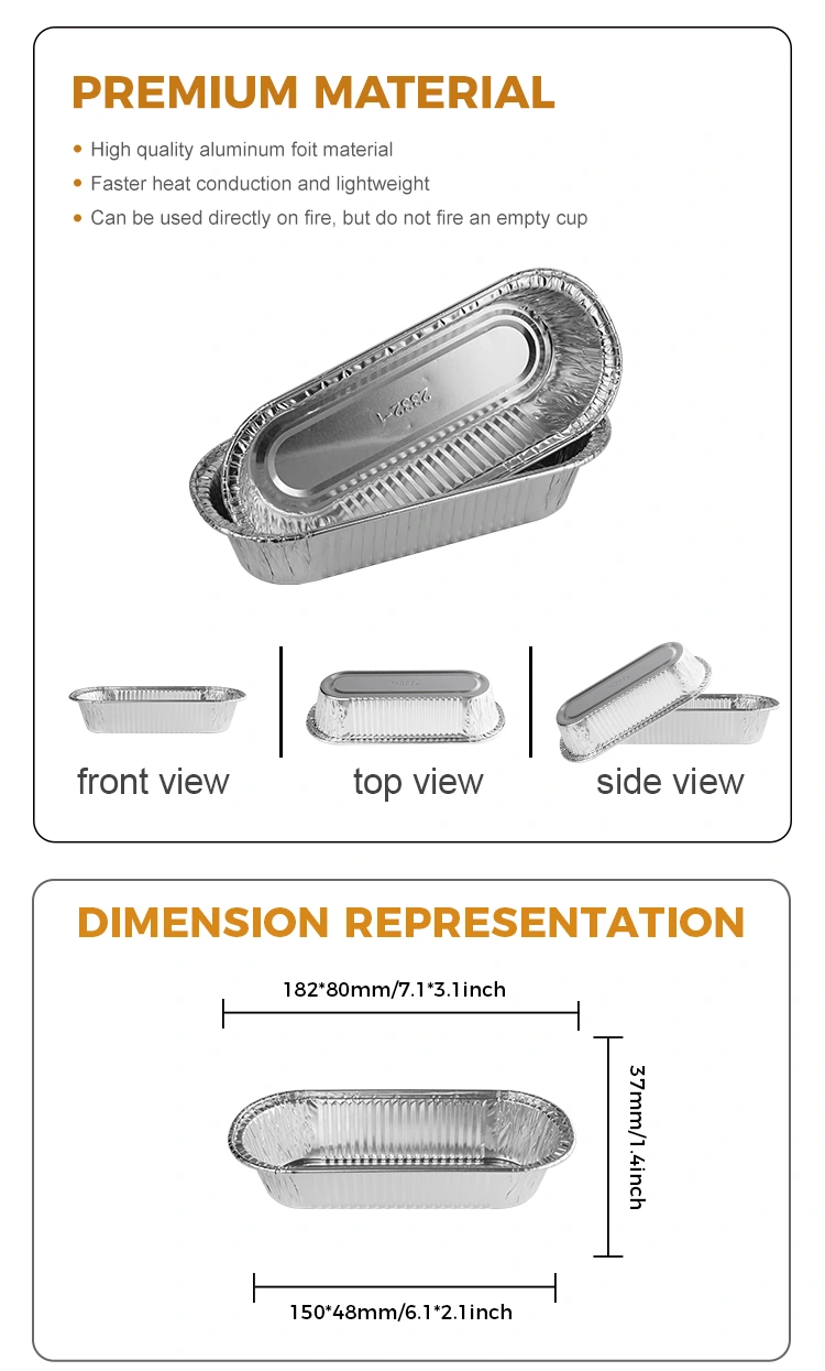 Yunchu aluminiumsfolieleverandør Oval Air Fryer Baking Silver Aluminium Fooly Containers er en type beholder som kan brukes til å dampende, koke, bakerst, baking og andre formål, og kan brukes til sauser, dyppende sauser, små dekning og bakerprøver. 8011-0 Type aluminiumsfolie materiale, strekkmotstand og korrosjonsmotstand har god forlengelse, tyknet aluminiumsfolie, holdbart og ikke lett å bryte på vilje, hemming, front- og bakre halvsirkeldesign ikke skader hender, integrert støping, veggoverflate er like glatt som et speil, rik størrelse egnet for et utvalg av scenen.