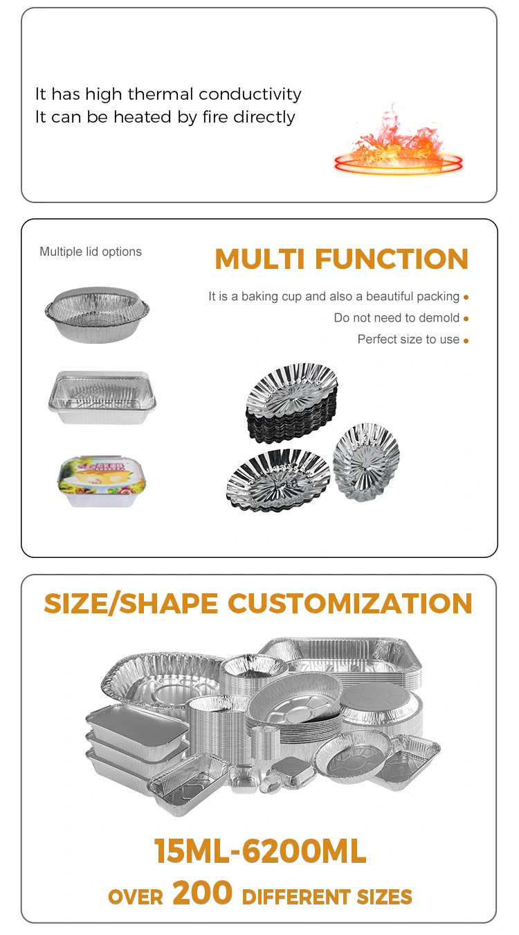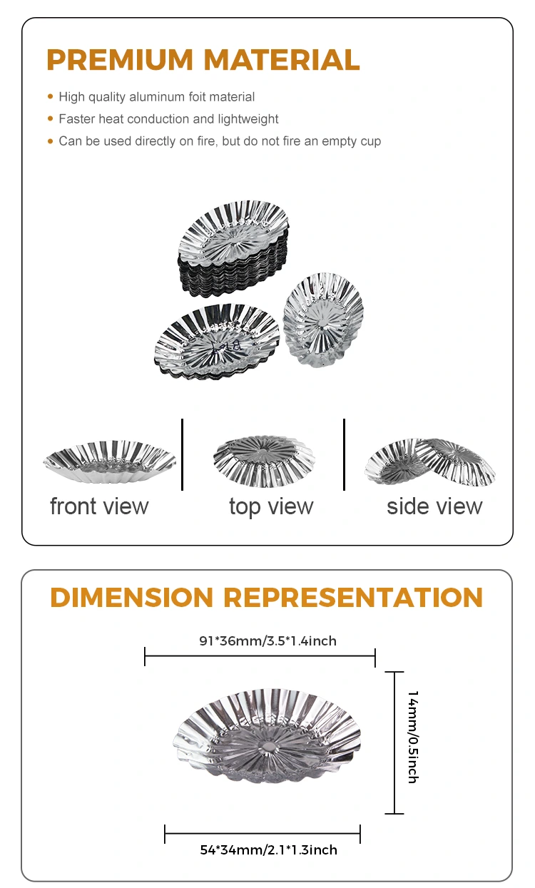 Yunchu aluminiumsfolieleverandørens snøre vaniljesaus terte sølv aluminium folie matbeholder, sklisikre kopp kroppsdesign, kopp kropp med anti-slip tekstur, øke friksjonen, forhindre glidning. Blonderkoppmunndesignet kan brettes og lagres, noe som er praktisk og praktisk. Flere design med stor kapasitet, engangsbruk, ingen grunn til å rengjøre, bredt bruksområde, egnet for bakte eggterter, kaker, eggeplomme-chips, skålkaker og andre delikatesser. Eggetterbrettene fra Yunchu aluminiumsfolieleverandører har passert den tyske ERP -sertifiseringen, EUs SGS -sertifisering og ISO9001 Quality Management System -sertifisering. Vi bruker sunne, miljøvennlige matkvalitetsmaterialer for å sikre sikkerheten og ikke-toksisiteten til våre produkter. Disse materialene er ikke bare fornybare, men også miljøvennlige, noe som gjenspeiler våre strenge krav i mattrygghet og vår forpliktelse til å forfølge standarder av høy kvalitet for våre samlede produkter.