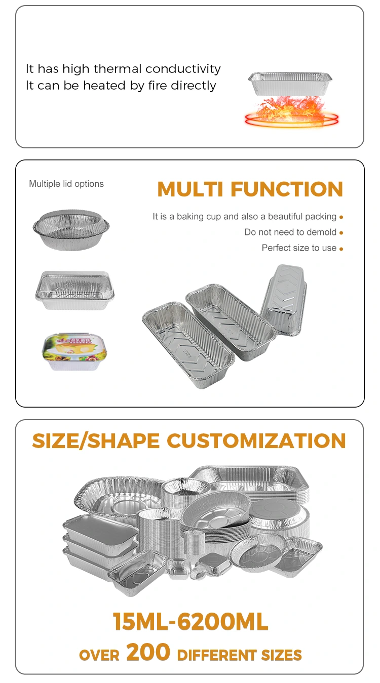 Den rektangulære brødbrettet bakeplate sølv aluminiumsfoliebeholdere levert av Yunchu aluminiumsfolieleverandør har en langvarig og motstandsdyktig design som forblir stabil selv i møte med høye temperaturer åpne flammer, noe som sikrer at delikatessene dine ikke blir skadet på noen måte. I tillegg er containerne våre nøye designet med hevede seksjoner som effektivt forhindrer suppe i å strømme ut mens du forhindrer at mat stikker, slik at du kan glede deg over hver bit med letthet. De elegante kantene på beholderen er designet for å være både estetisk tiltalende og funksjonelle, og unngår risikoen for kutt under bruk. Den indre foldekantdesignen er enda mer intim, og forhindrer forbrenninger mens du sikrer bruk av sikkerhet. Rektangulært brødbrett bakepanne sølv aluminiumsfoliebeholder kan være i direkte kontakt med mat og oppfylle matsikkerhetsstandarder. Videre er produktene våre engangs, og sparer problemer med rengjøring, og aluminiumsfolieboksen kan også resirkuleres for å oppnå grønt forbruk. Yunchu aluminiumsfolie overvåker strengt hver produksjonsprosess for å sikre at alle produkter oppfyller nasjonale sikkerhetsstandarder. Vi har skaffet en rekke internasjonale sertifiseringer, inkludert National Safety Certificate for Aluminium Food Packaging Materials, German ERP -sertifisering, EU SGS -sertifisering og ISO9001 -sertifisering.