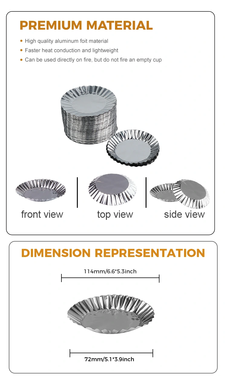 Våre produkter har fått det nasjonale sikkerhetssertifikatet for aluminiumsmatemballasjematerialer og har passert den tyske ERP -sertifiseringen, EU SGS -sertifisering og ISO9001 Quality Management System -sertifisering. Vi bruker sunne og miljøvennlige matkvalitetsmaterialer for å sikre sikkerheten og ikke-toksisiteten til våre produkter. Disse materialene er ikke bare resirkulerbare, men også miljøvennlige, og gjenspeiler våre strenge krav til matsikkerhet og vår forpliktelse til å tilby produkter av høy kvalitet. Den høye, praktiske og vakkert designede bakekake rundt mold folieputer er egnet for både hjemmelagde måltider i familieinnstillinger og tjenester i kommersielle virksomheter.