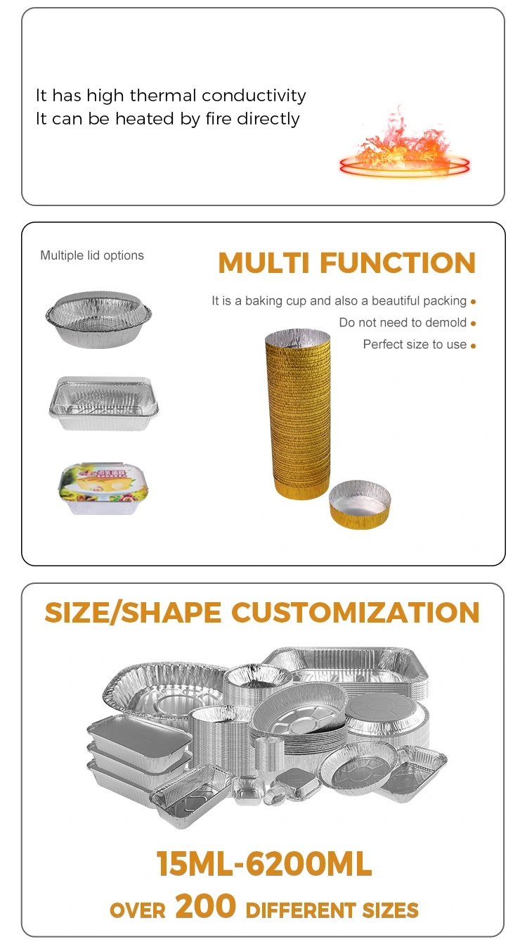 Denne runden små bakingssølv -aluminiumsfoliematbeholder er egnet for å pakke en rekke små bakeriprodukter som makroner, informasjonskapsler og terter. Vi kontrollerer strengt hvert produksjonstrinn når det gjelder kvalitetskontroll for å sikre at alle produkter oppfyller nasjonale sikkerhetsstandarder, og har bestått tysk ERP -sertifisering, EU SGS -sertifisering og ISO9001 -sertifisering.